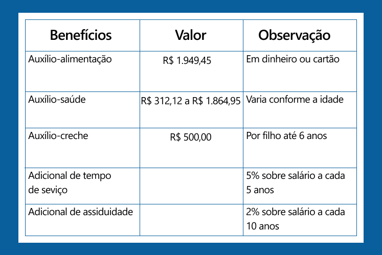 “O cargo de Polícia Legislativa, por exemplo, hoje o início de carreira gira em torno de R$ 3.150 . Mas para aqueles que forem selecionados e puderem integrar o corpo que trabalha aqui 8 horas por dia, esses receberão, fora o salário, uma função gratificada de segurança legislativa de mais R$ 3.500. Estamos falando de quase R$ 6.700. Aí tem o auxílio-alimentação de quase R$ 2 mil, tem auxílio-saúde”, disse.