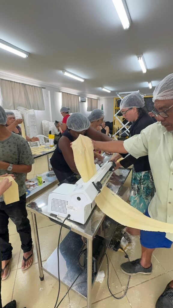 A Associação Cultural Todos Podem, em parceria com o Centro de Referência de Assistência Social (CRAS), realizou ontem (04/11/25) o curso gratuito de macarrão e pastel artesanal voltado para as famílias beneficiárias do Programa Bolsa Família no município de Baixo Guandu.