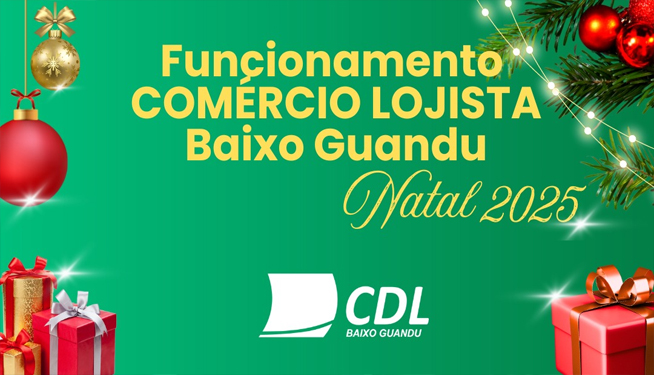 Nesta segunda-feira, o comércio funciona das 8 às 20 horas, o mesmo acontecendo amanhã; já na quarta-feira, dia 24, véspera de Natal, o comércio fecha às portas às 19 horas. No dia 25, feriado de Natal , tudo fecha – com exceção de farmácias e alguns supermercados e mercearias localizadas nos bairros.