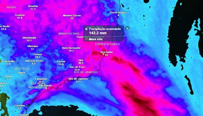 O Instituto Nacional de Meteorologia (INMET) emitiu aviso vermelho de acumulado de chuva para este domingo (4) entre os estados de Minas Gerais, do Rio de Janeiro e do Espírito Santo, com maior parcela para o território capixaba.