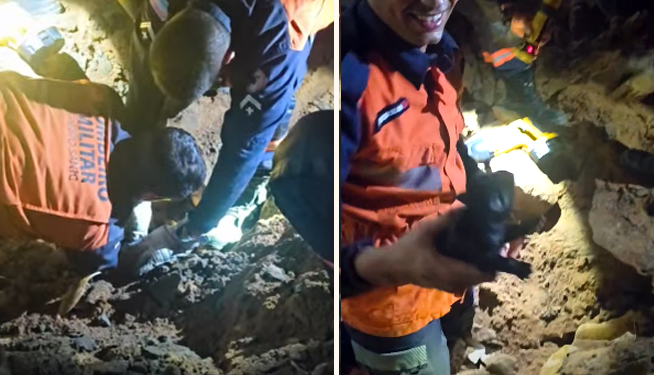 “A professora Soraya, também da ONG, conseguiu resgatar a cadela com quatro filhotes entrando na galeria. Um último filhote, no entanto, se locomoveu por uma tubulação tornando o resgate dela impossível sem uma ajuda externa”, explicou Marciany Ferraz.
